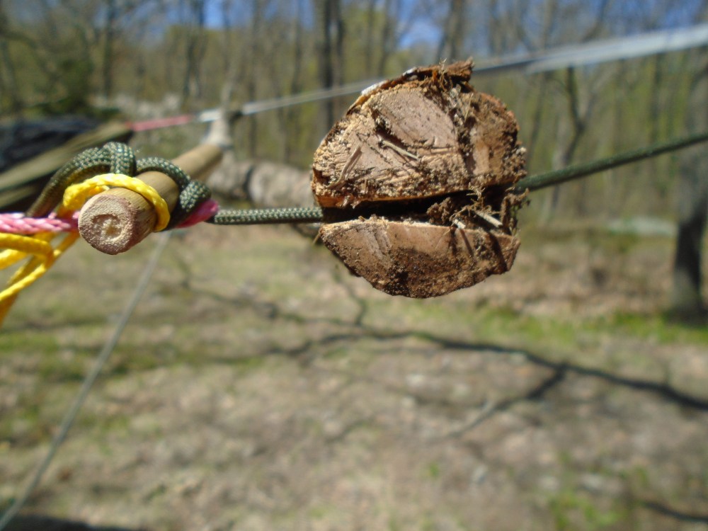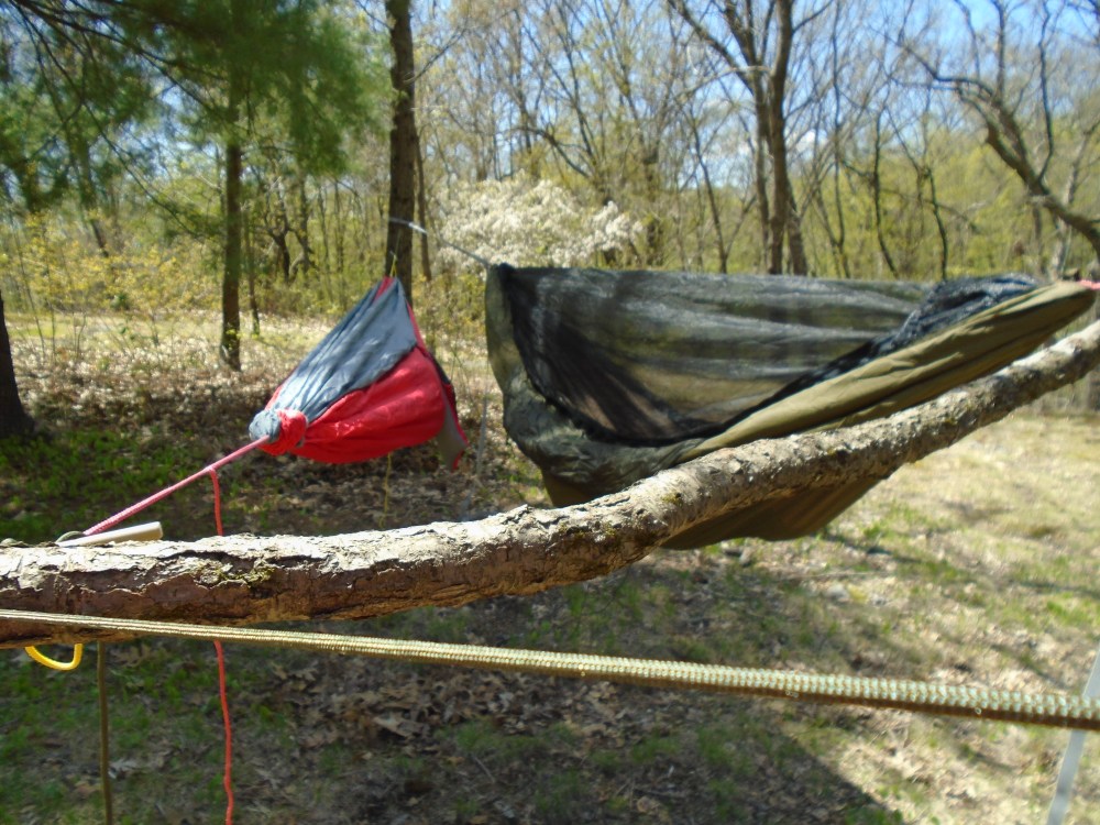 Then you just put the stick at the head end of the hammocks and that keeps them separated but parallel.