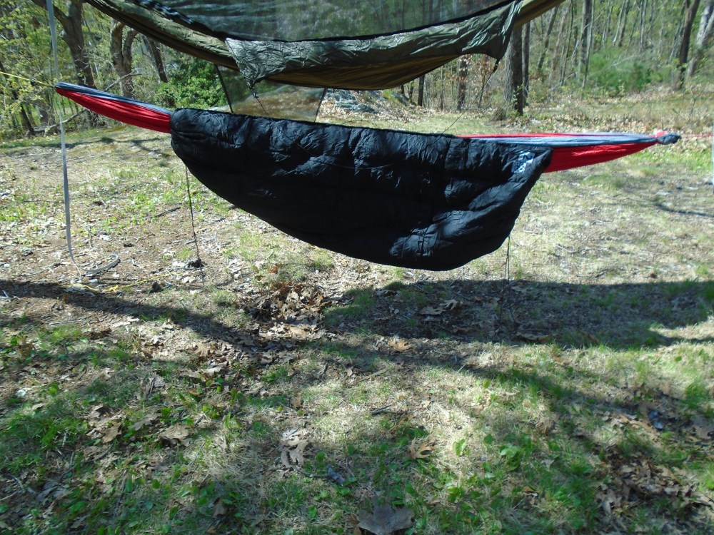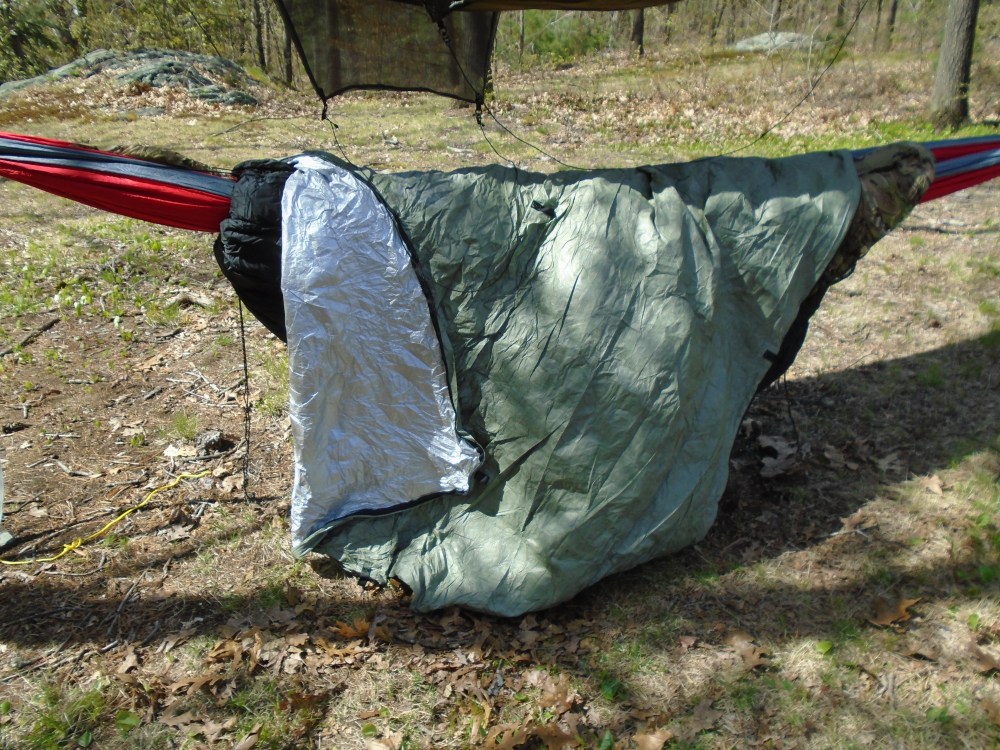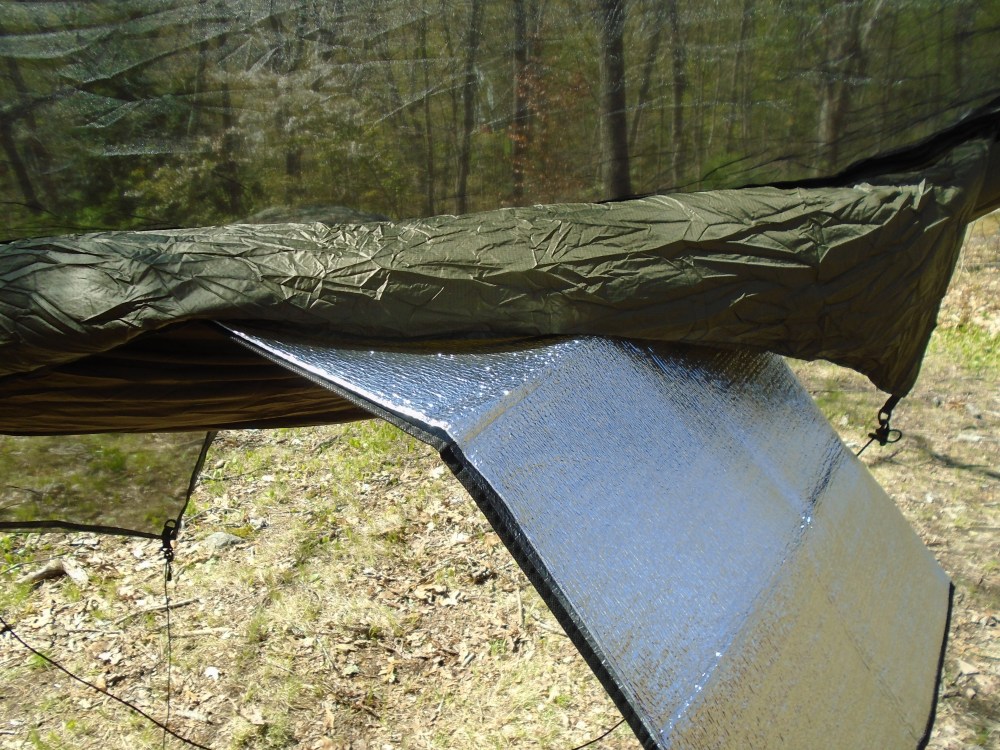 As I stated before, I am a hammock camper, and my hammocks are double layered, so you can slide sleeping mats inside them, between the two layers of fabric. Typically, I use the sun shade, which protects me from heat loss via convection, inside the hammock.